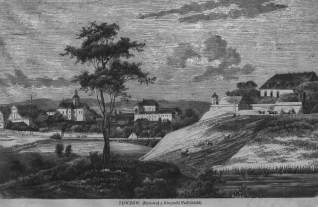 Page from 'Tygodnik Illustrowany' 1863, featuring an article about Rzyszczew. Text discusses the history of the town, including the founding of a wooden church and monastery in 1765 by Stanisław and Urszula Szczeniowski. Photo showing Description of Rashchev Gallery of the object +1