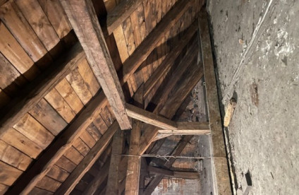 Salvage work on part of the roof truss in the Armenian Cathedral in Lviv