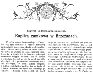 W tej części naszego serwisu zapraszamy do zagłębienia się w historyczną podróż po dawnym spojrzeniu na Polonika. Czasami są to jedyne ślady i informacje po nieistniejących już zabytkach, kiedy indziej są wyrazem tego, jak istniejące do dzisiaj zabytki były postrzegane. Katalog „W przedwojennych publikacjach” to wciąż rozwijany zbiór unikalnych materiałów, które pokazują polską kulturę oczami naszych przodków.